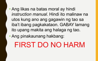 Pl Nalaman ko ang Mga. Isinasabuhay ng tao ang mga salita at utos ng Diyos. Kailangang maunawaan kung ano ang Batas Moral o Batas Kalikasan.