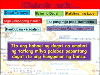 Ang teritoryo ay tumutukoy sa saklaw na lupain at katubigan kasama na ang himpapawid at kalawakan sa itaas ng mga ito sa ilalim ng isang estadoIto ang tinitirhan ng mga tao. TERITORYO tumutukoy sa saklaw ng lupain sa ilalim ng isang namumuno estado lungsod at iba pa. Turtle Mangsee PAGBUO NG KASALUKUYANG TERITORYO NG PILIPINAS 4.